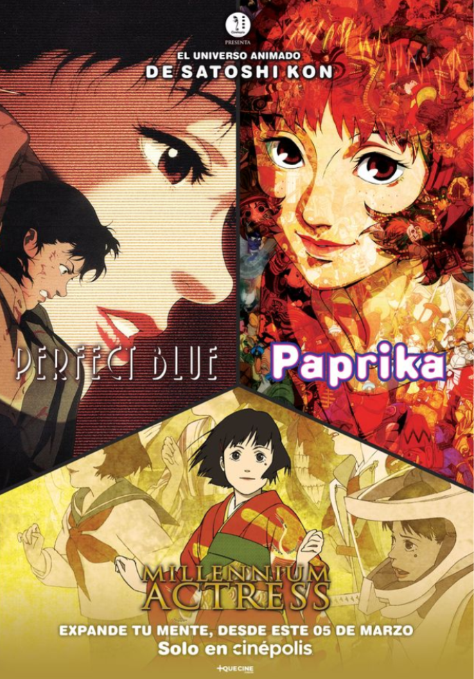 Cinépolis +QUE CINE presenta El Universo Animado de Satoshi Kon, un ciclo cinematográfico que reúne tres de las obras más emblemáticas del aclamado director japonés: Perfect Blue (1997), Millennium Actress (2001) y Paprika (2006). La preventa Cinépolis ya está activa y el ciclo llegará a la pantalla grande a partir del 5 de marzo, en funciones exclusivas.
