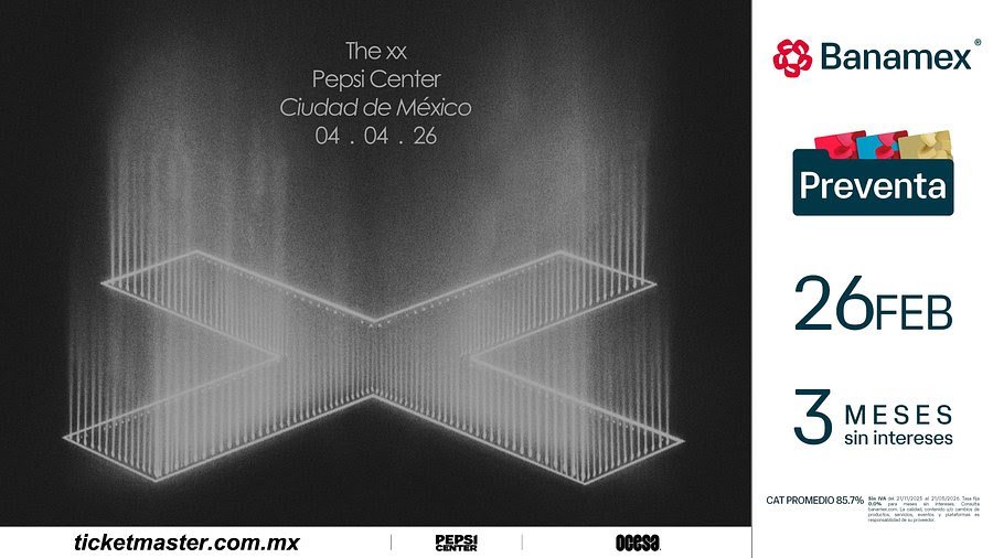 Después de ocho años de ausencia en escenarios mexicanos, The xx anuncia su esperado regreso a la Ciudad de México el próximo 4 de abril de 2026, en el Pepsi Center. El show marcará su primera presentación en el país desde que encabezaron el Corona Capital en 2017 y será una fecha muy especial justo antes de su participación en Coachella 2026.