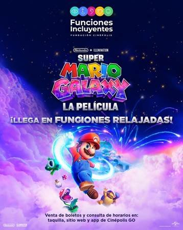 Cinépolis, en conjunto con Fundación Cinépolis y Universal Pictures, anuncian la llegada de Funciones Relajadas de Super Mario Galaxy: La Película, una experiencia pensada para que más personas puedan disfrutar del cine en un entorno accesible, cómodo e incluyente.