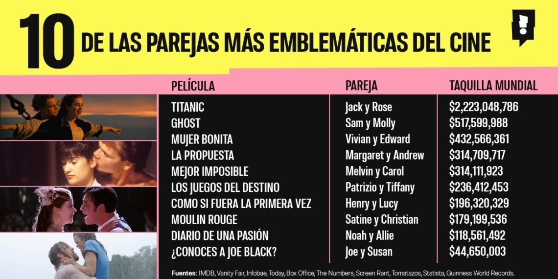 Debido a este fenómeno, la plataforma de entretenimiento Spoiler.mx realizó una lista de las parejas más legendarias de Hollywood, no sólo analizando su legado sentimental, sino también la recaudación económica que ha sido generada por estos títulos a través del tiempo.