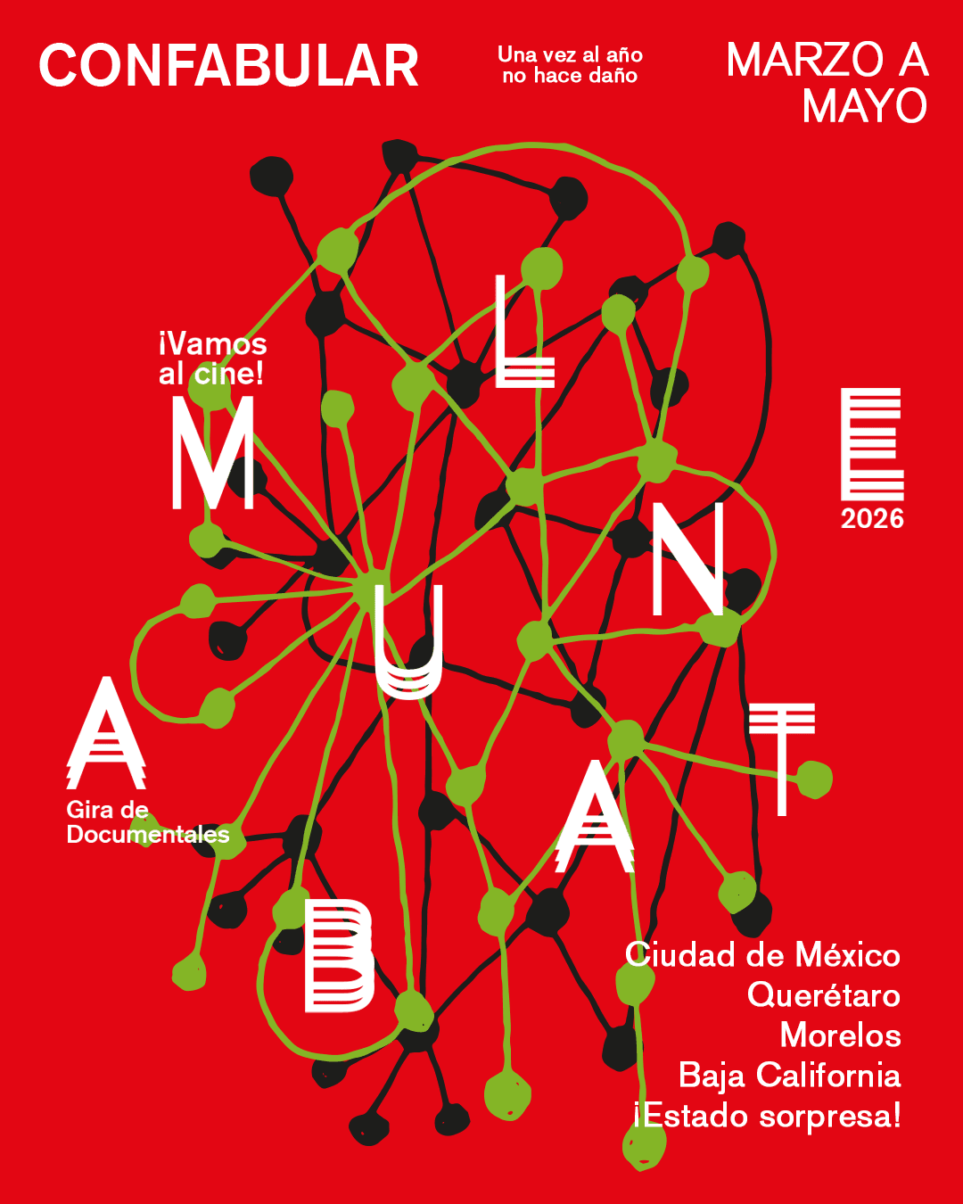 La 21.ª Gira de Documentales Ambulante se llevará a cabo del 5 de marzo al 21 de mayo de 2026 y visitará cinco estados: Ciudad de México (5-14 de marzo); Querétaro (19-26 de marzo); Michoacán (16-26 de abril); Morelos (23-26 de abril); y Baja California (14-21 de mayo).