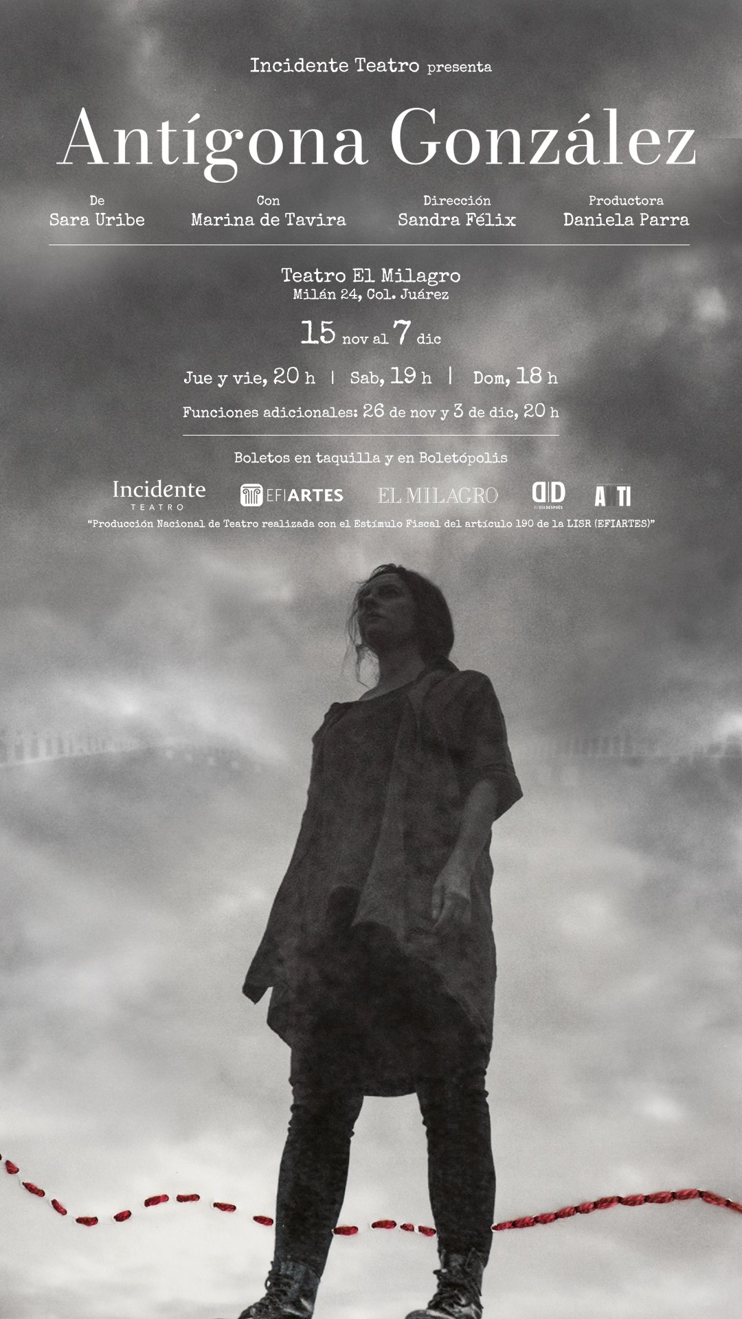 Inspirada en la figura clásica de Antígona, la obra transita desde el mito hasta el presente mexicano, en el que miles de mujeres —como Antígona González— buscan incansablemente a sus seres queridos víctimas de desaparición forzada. La pieza es un grito poético, urgente y profundamente humano, que cuestiona nuestra relación con la justicia, la memoria y el duelo.