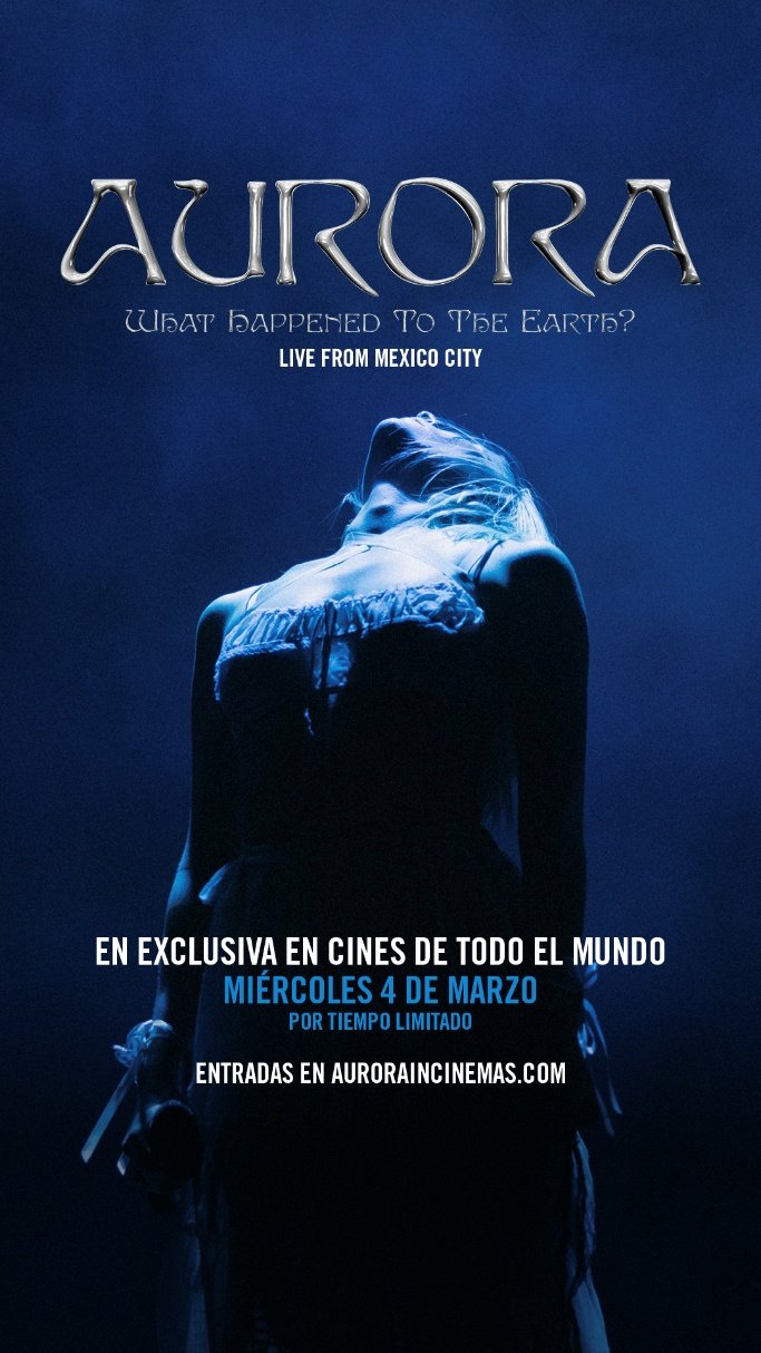 AURORA: What Happened To The Earth?, el debut cinematográfico de la artista noruega AURORA, una experiencia creada especialmente para revivir, desde la pantalla grande, una noche que marcó a miles de fans en México. La película captura el concierto más grande de su carrera como solista, realizado en el Palacio de los Deportes de la Ciudad de México ante más de 18 mil personas, y llegará a salas a partir del 4 de marzo, distribuida por Trafalgar Releasing en colaboración con Mercury Studios y Fontana.