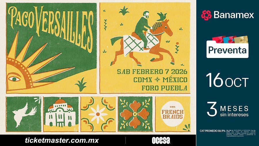El dúo que ha logrado fusionar la energía de la electrónica con la pasión ancestral de la guitarra flamenca, Paco Versailles, estará en nuestro país para un show que muchos estábamos esperando. No te puedes perder esta velada única, llena de beats hipnóticos y folclor renovado, el próximo 7 de febrero de 2026 en el Foro Puebla.