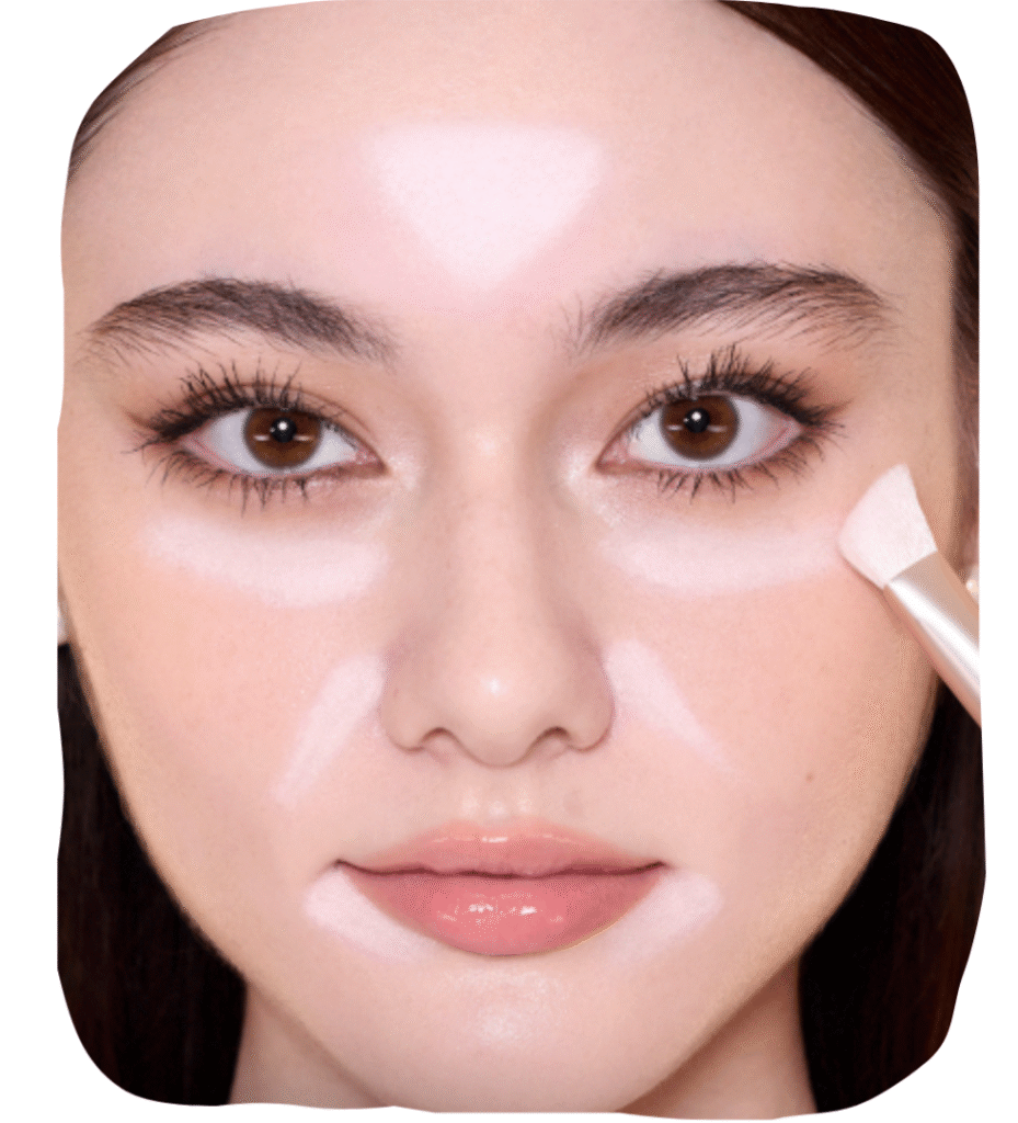 Aplica debajo de pómulos, en las sienes, mandíbula y nariz para dar definición.