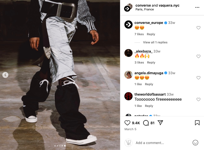 En su presentación en París, Vaquera quedó formalmente instalada como parte del calendario de la moda, lo que demuestra que Converse apuesta fuerte a diseñadores disruptivos que marcan tendencias.