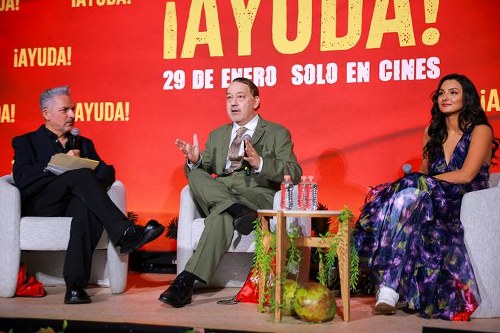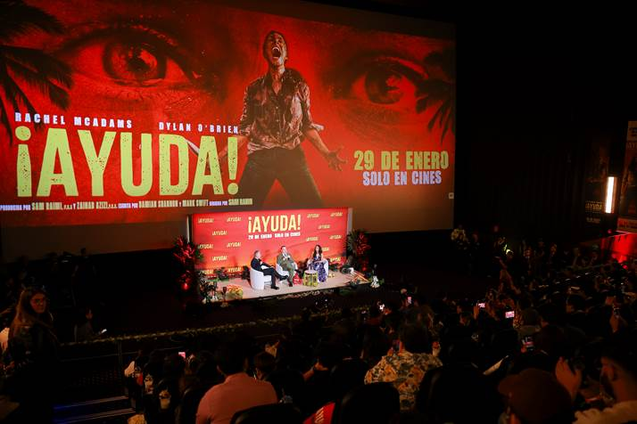 Durante este emocionante encuentro, Raimi y Azizi compartieron detalles sobre la producción, el proceso creativo y la experiencia de dar vida a “¡AYUDA!” en un dinámico panel moderado por el periodista, crítico de cine y conductor, Oscar Uriel. Fans, creadores de contenido y miembros de la prensa tuvieron la oportunidad de hacer preguntas a los realizadores y conocer más sobre el detrás de cámaras de esta producción.