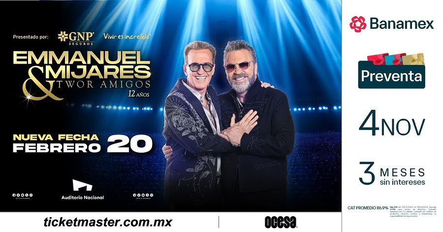 La dupla más exitosa y querida de la música en español está de vuelta con un show más. No hace falta mencionar que Emmanuel & Mijares regresarán al máximo escenario de Reforma para continuar la serie de conciertos que ya se ha convertido en una verdadera historia musical. La cita es en el emblemático Auditorio Nacional el próximo 20 de febrero de 2026. ¡Prepárense para vivir uno de los espectáculos más exitosos de los últimos 10 años!