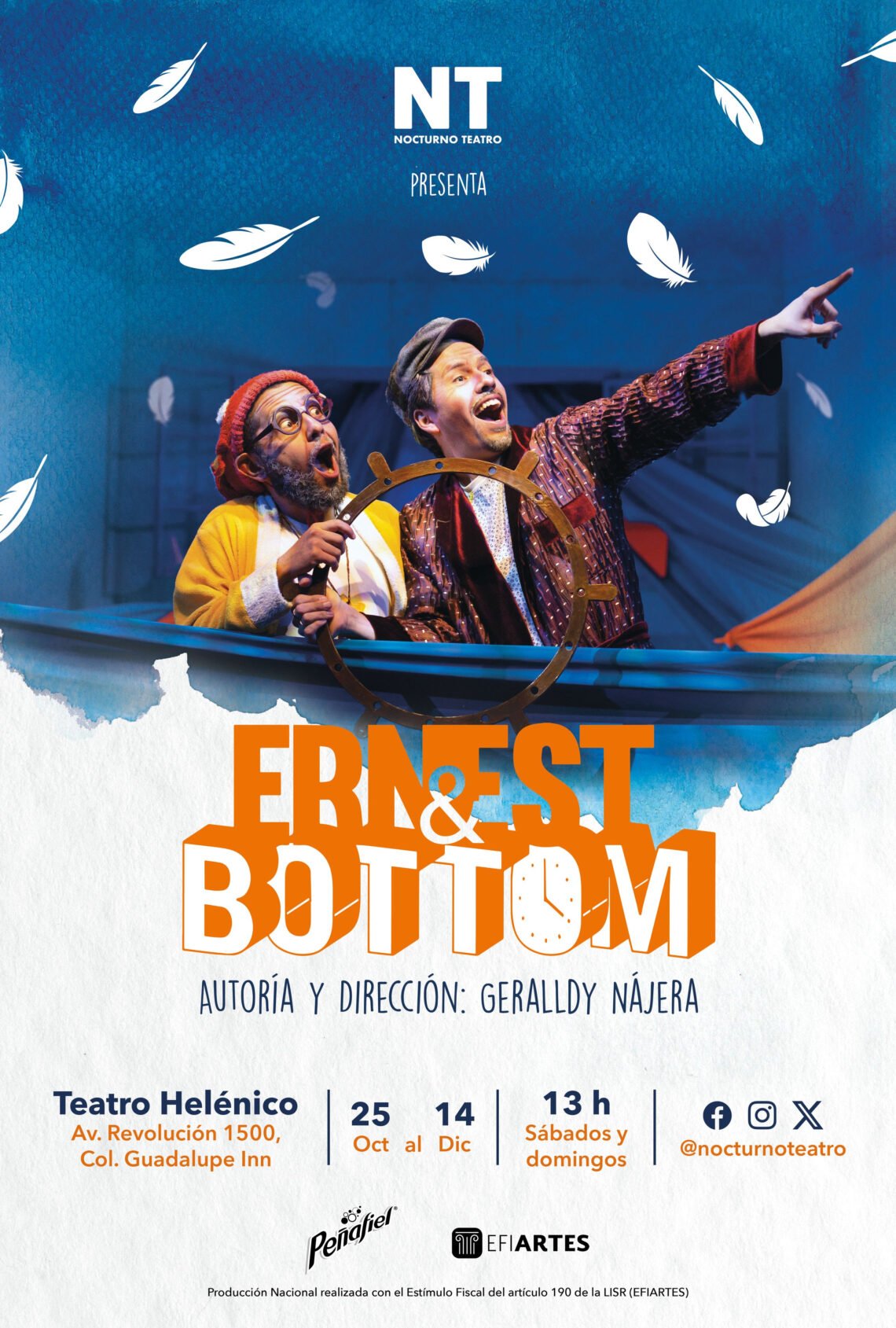La última temporada de “Ernest y Bottom”, escrita y dirigida por Geralldy Nájera, se presentará del 25 de octubre al 14 de diciembre en el Teatro Helénico. Los sábados y domingos a las 1:00pm.
