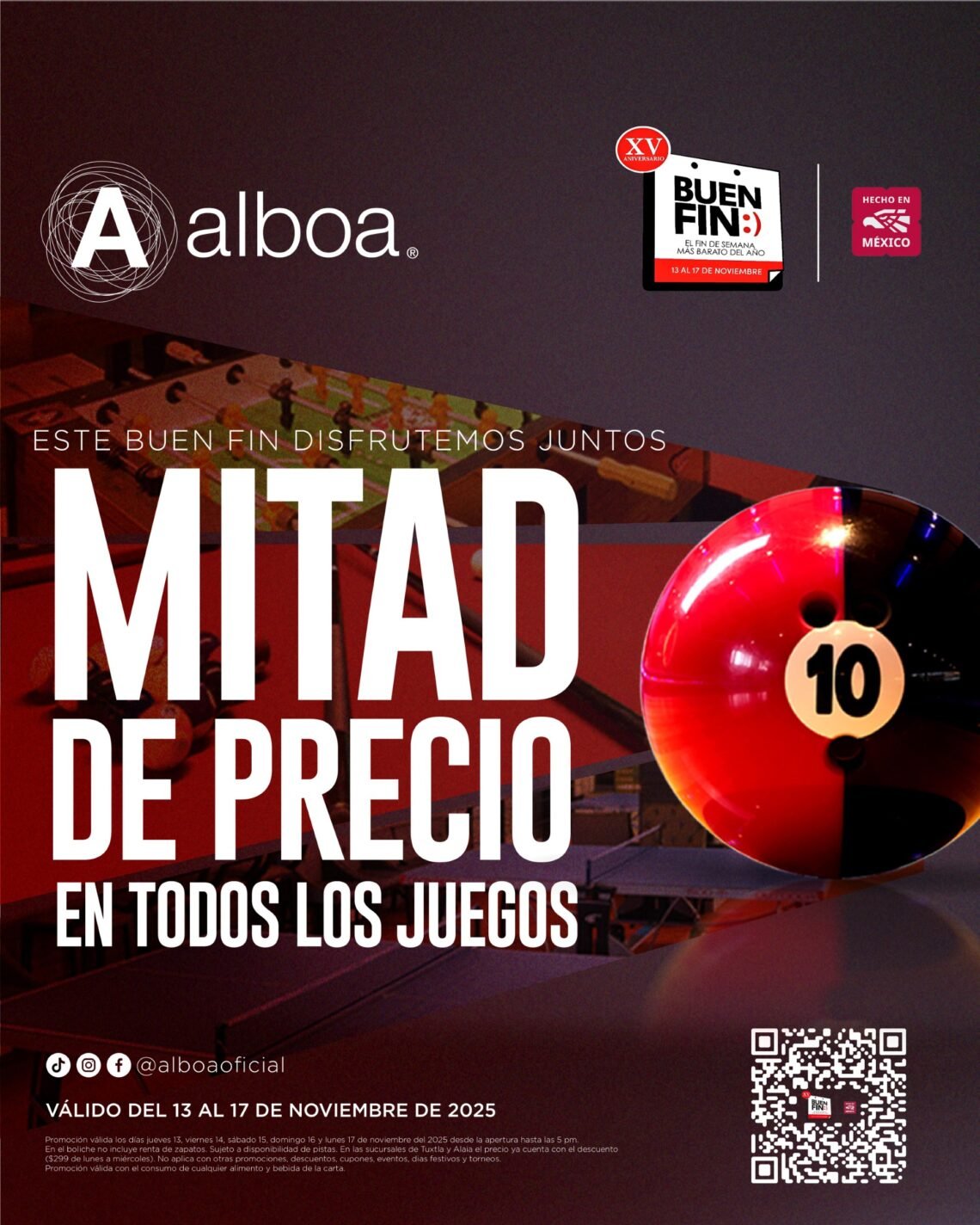 Si lo que quieres es divertirte al máximo con una partida de boliche o gozar de tu deporte favorito mientras disfrutas de un rico menú, Alboa es tu opción con estas dos irresistibles promociones: