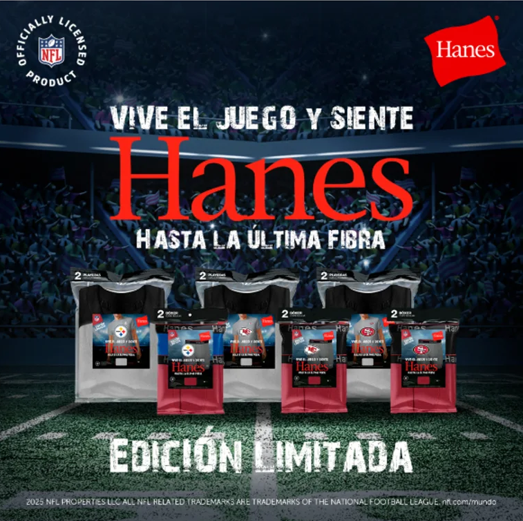 La colección Hanes NFL 2025 llegará a México en septiembre, y estará disponible en tiendas departamentales y de autoservicio, justo a tiempo para encender la temporada.