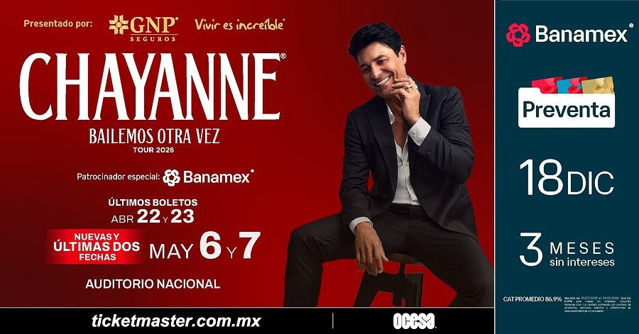 Después de que Chayanne estuviera de vuelta en los escenarios gracias a su gira Bailemos Otra Vez, el papá de todo México extendió sus shows hasta 2026 para seguir apapachando a todos sus hijos y a las mamás. A las dos fechas ya anunciadas (22 y 23 de abril), agregó otro par que se realizarán los próximos 6 y 7 de mayo y que serán las últimas de esta grandiosa gira por nuestro país. ¡No te puedes perder de estos increíbles conciertos, viendo la carismática sonrisa del boricua y disfrutando de sus pasos de baile en el Coloso de Reforma!