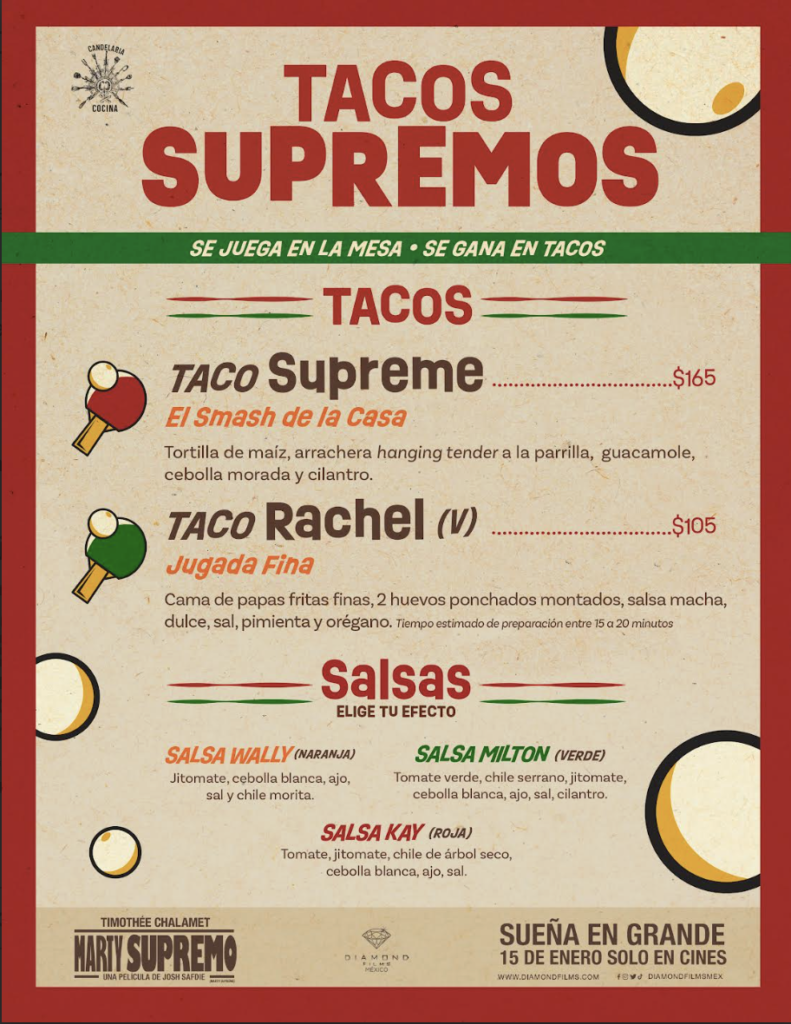Los participantes tendrán la oportunidad de jugar, divertirse y clasificar a la gran final del torneo, que se llevará a cabo el próximo martes a las 7:30 pm. Además, podrán degustar los tacos conmemorativos de Marty Supremo, inspirados en la película y disponibles durante toda la activación.