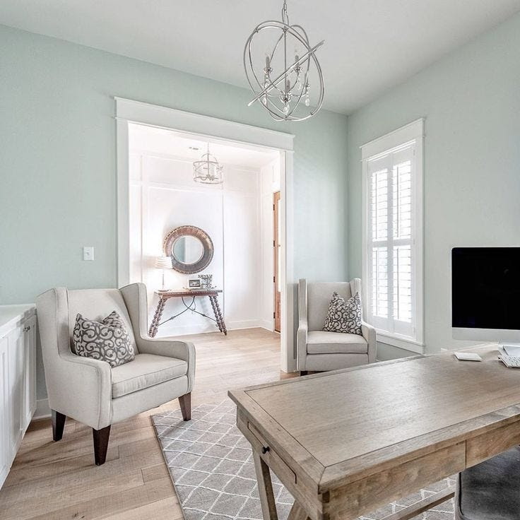 La primavera es luz, naturaleza y serenidad. Elige tonos que conecten con la estación con una paleta fresca y ligera como Aqueduct SW 6578, un azul suave con sensación de calma, Creamy SW 7012, un neutro cálido y acogedor y Quietude SW 6212, un gris verdoso que relaja.