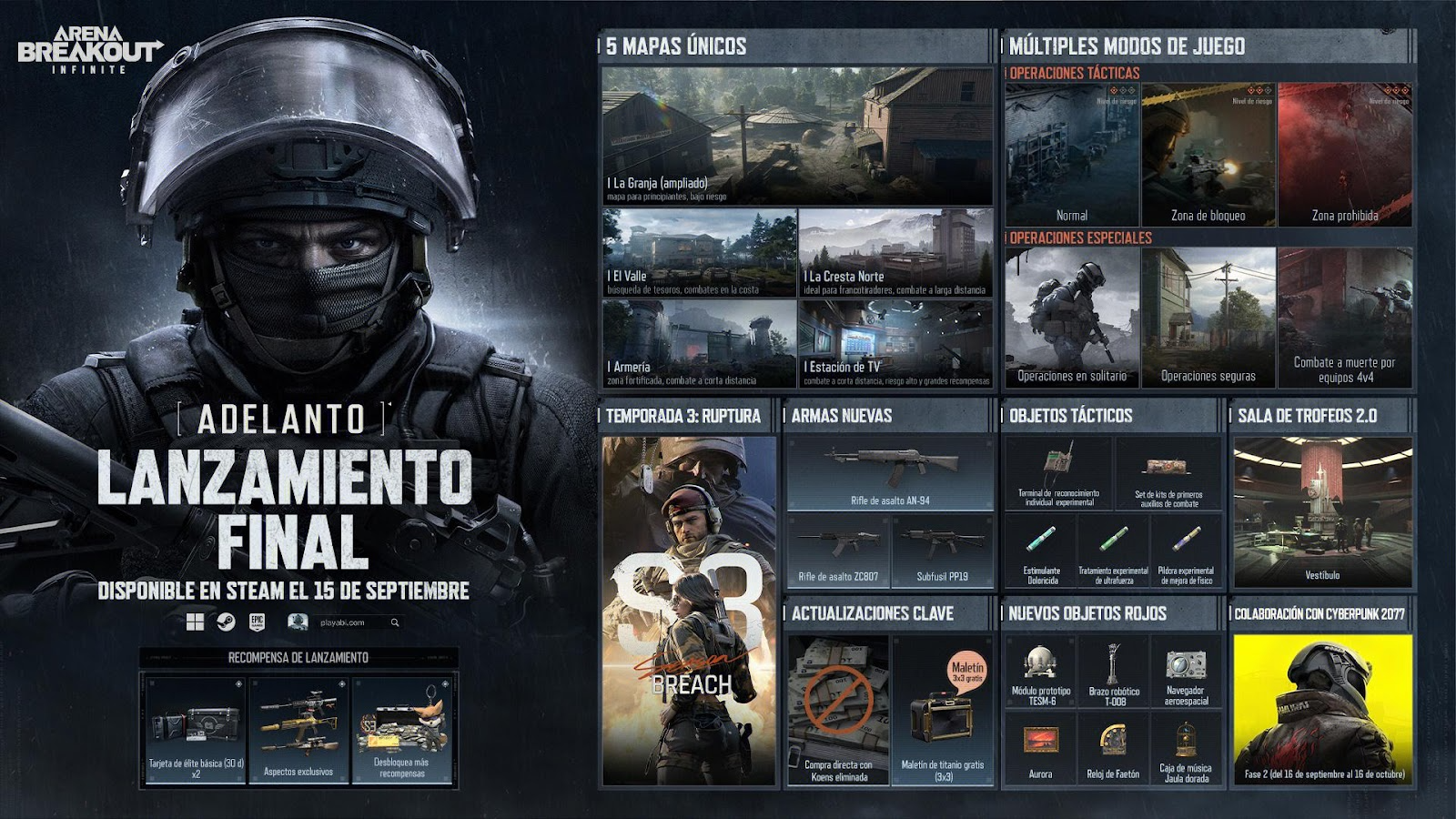Arena Breakout: Infinite se lanzará oficialmente en Steam el 15 de septiembre. Para obtener más información y las últimas noticias, visita el sitio web oficial de Arena Breakout: Infinite y sigue el juego en las redes sociales.