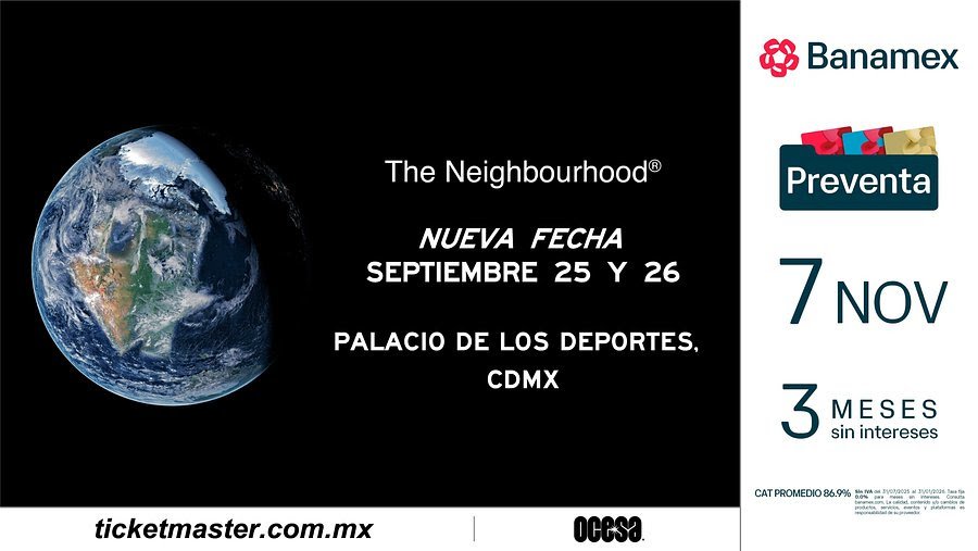 La preventa Banamex tendrá inicio el 7 de noviembre; la venta general se liberará un día después, el 8 de noviembre. Para más información sobre su gira, se recomienda visitar el sitio web de la banda, https://tour.thenbhd.com/ y https://www.ticketmaster.com.mx/.